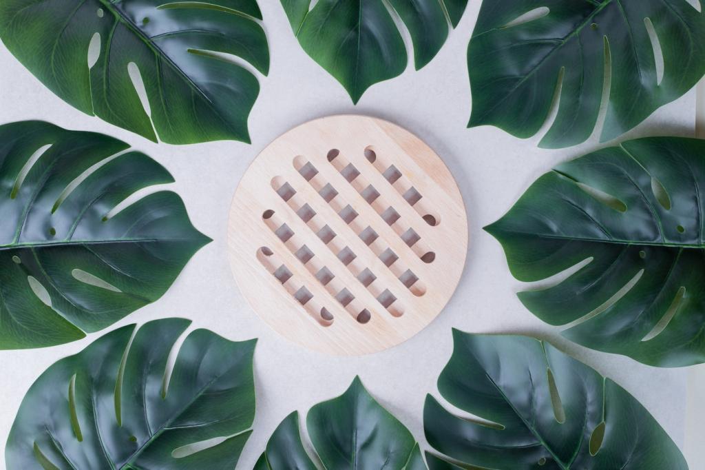 Kork wird aus der Rinde gewonnen, ohne den Baum zu fällen. Er federt Schritte, isoliert gegen Kälte und dämpft Geräusche. Ein Leser schrieb, wie Kork im Kinderzimmer Stürze weicher machte – erzähle uns deine Erfahrungen.